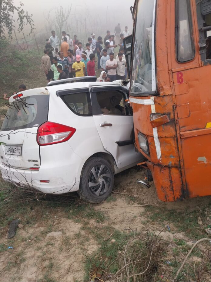 कार और बस की टक्कर में तीन की मौत व दो घायल